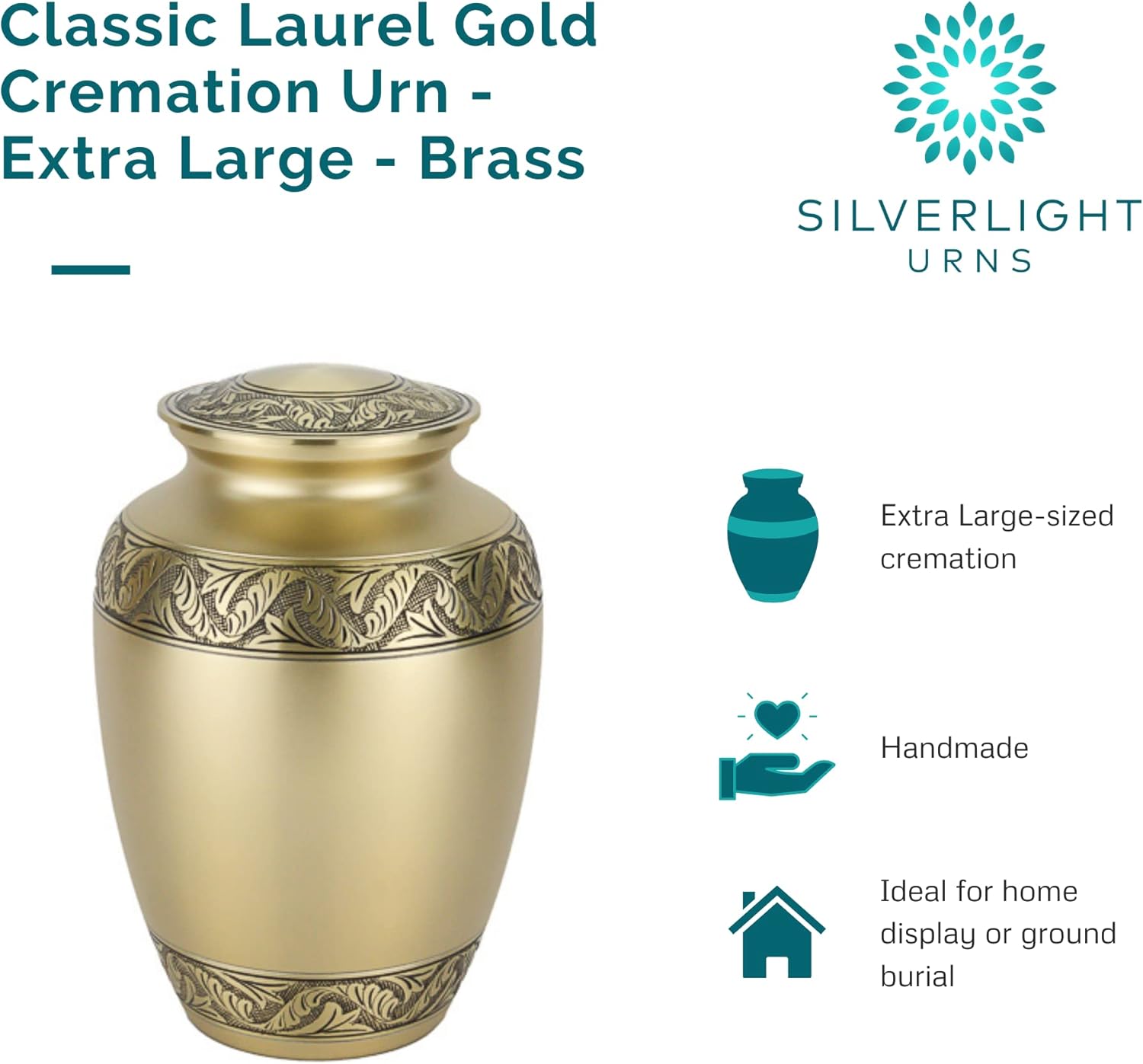 - TIMELESS DESIGN: Honor your loved one and keep your memories close with this classic design. This extra large adult cremation urn is finished in gold and features engraved bands with detailed leaf images. The hand-engraved detailed bands of leaves encircle the lid, the middle, and the bottom of this cremation urn.