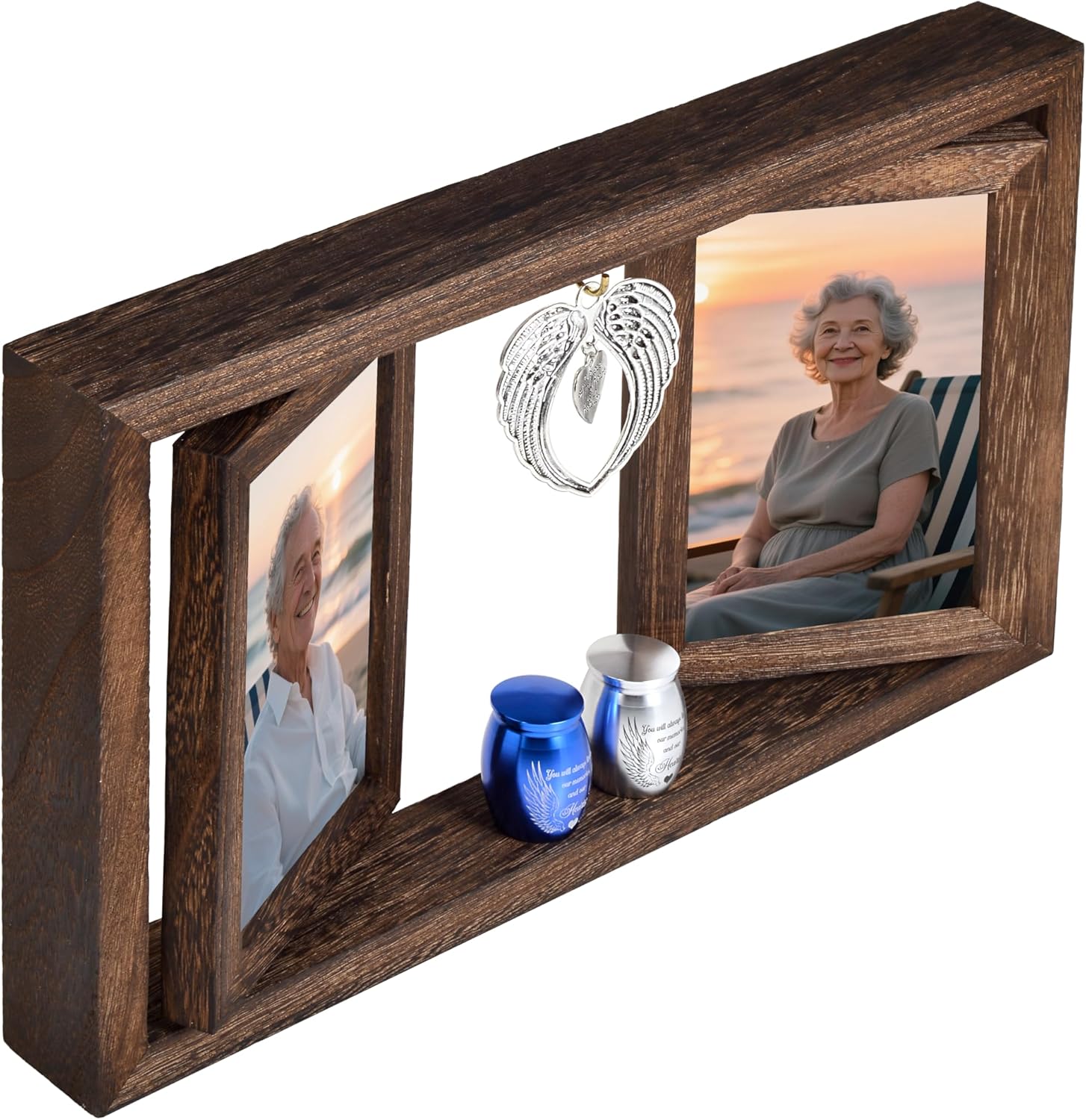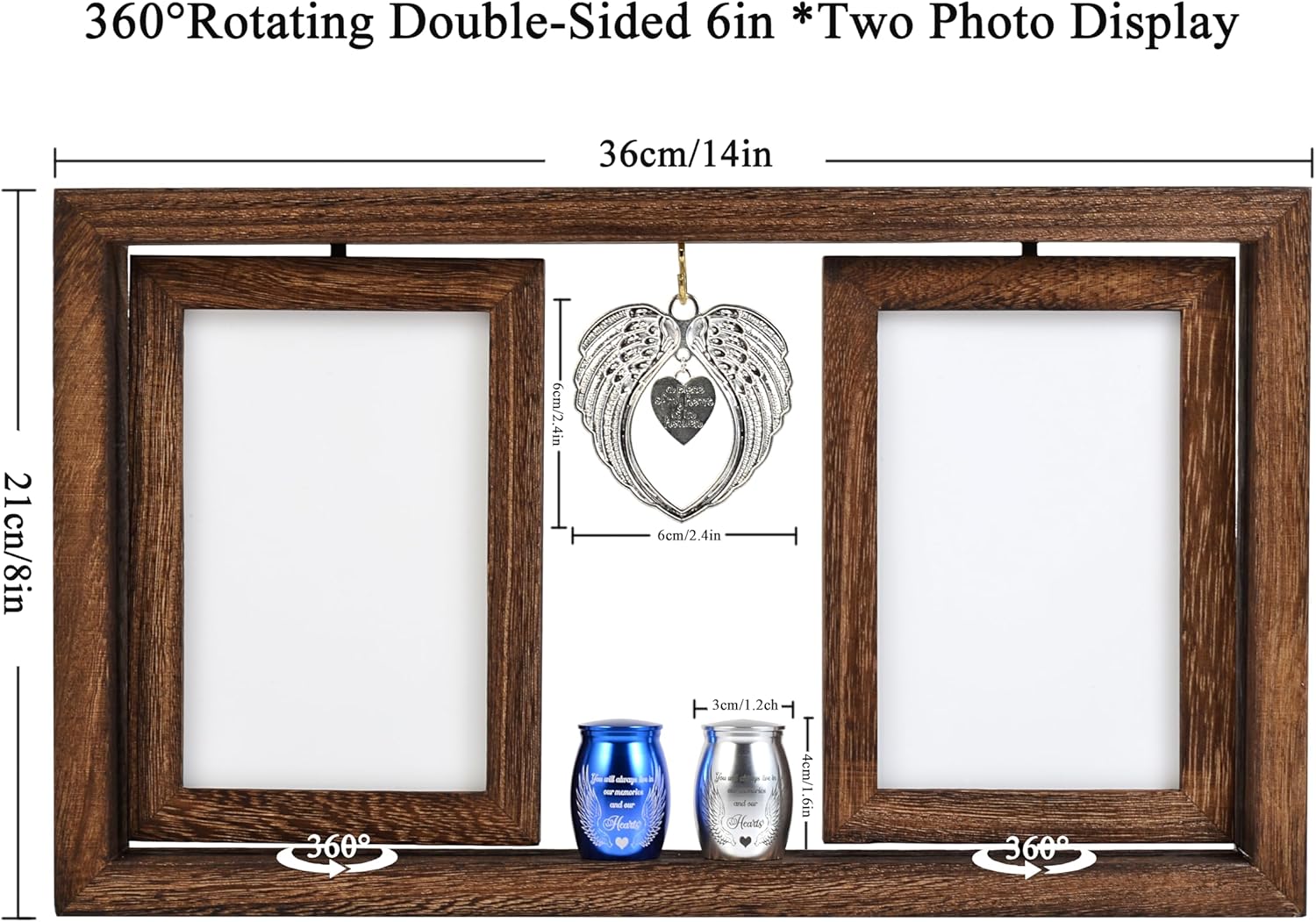 - Elegant Rotating Photo Frame – Preserve Precious Memories: The included urn with picture is a 360° rotating wooden frame (14"L x 8.3"H) that holds two 6 inch photos, allowing you to display both sides. Perfect for memorializing cherished moments with Father, Mother, Grandpa, Grandma, Brother, Sister, Friend, Pet, Etc