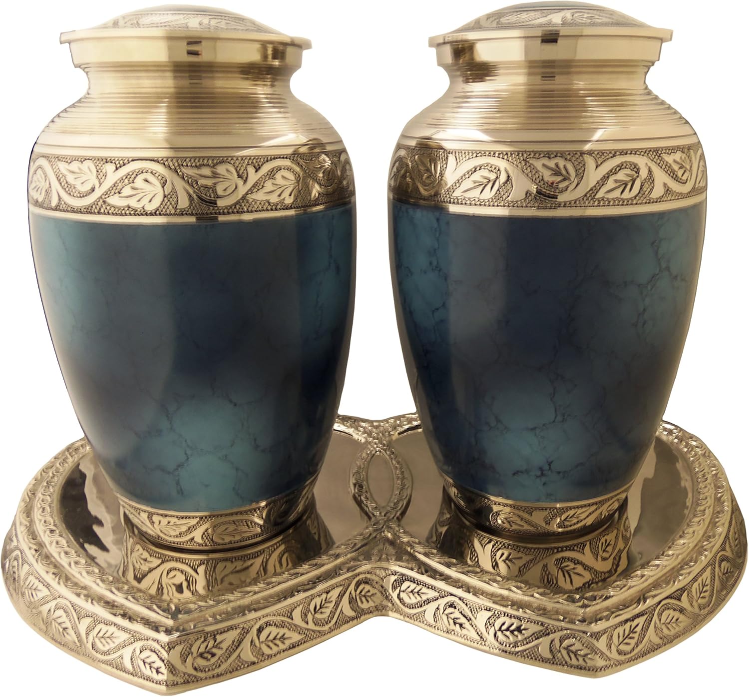 Two full sized, matching, adult cremation urns with a nickel finished, heart shaped Bass. All items made of brass.