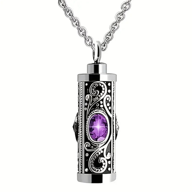 The Purple Cherished Memories Ashes Urns Necklace offers a beautiful way to keep your loved ones close with a stylish, unisex design suitable for anyone. Crafted from durable stainless steel, this pendant features a classic crystal pillar shape that balances elegance with timeless simplicity. Its fashion-forward yet respectful aesthetic ensures it can be worn daily or on special occasions, providing a meaningful tribute without compromising style. The high-quality materials used are free from harmful chemicals, ensuring safety and long-lasting wear. This necklace is an expert choice for those seeking a tasteful and enduring memorial keepsake.