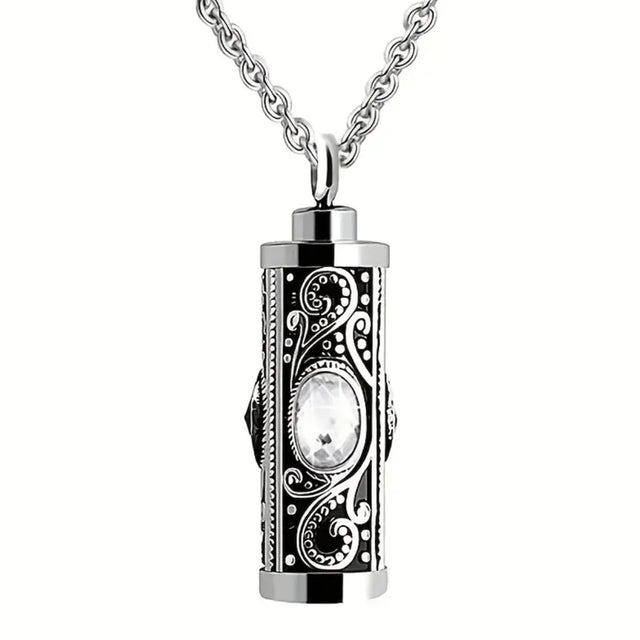 The White Ashes Keepsake Urns Pendant Necklace is a timeless piece designed for those seeking a meaningful way to honor a loved one. Crafted from durable stainless steel, this unisex pendant combines classic style with lasting strength. Its crystal pillar shape offers an elegant yet understated look, suitable for daily wear or special occasions. This necklace functions as both a stylish accessory and a discreet keepsake urn, allowing you to carry precious ashes close to your heart with dignity. The pendant is available with customizable options to fit your personal preferences, ensuring a fitting tribute that blends seamlessly with your style.