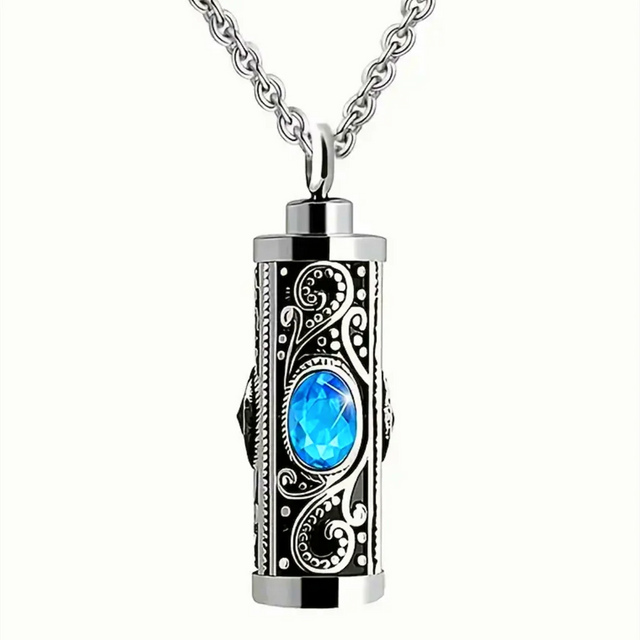 The Sky Blue Stainless Steel Memorial Urn Necklace combines enduring stainless steel with a serene crystal pillar design, offering a tasteful way to keep loved ones close. Crafted for unisex wear, this fashion-forward pendant serves as both a memorial and a stylish accessory. Its durable, chemical-free metal ensures longevity and hypoallergenic comfort. The classic semi-choice style adds subtle elegance, making it suitable for daily wear or special occasions. This necklace is an expert blend of meaningful tribute and refined craftsmanship, designed to honor memories with dignity and grace.