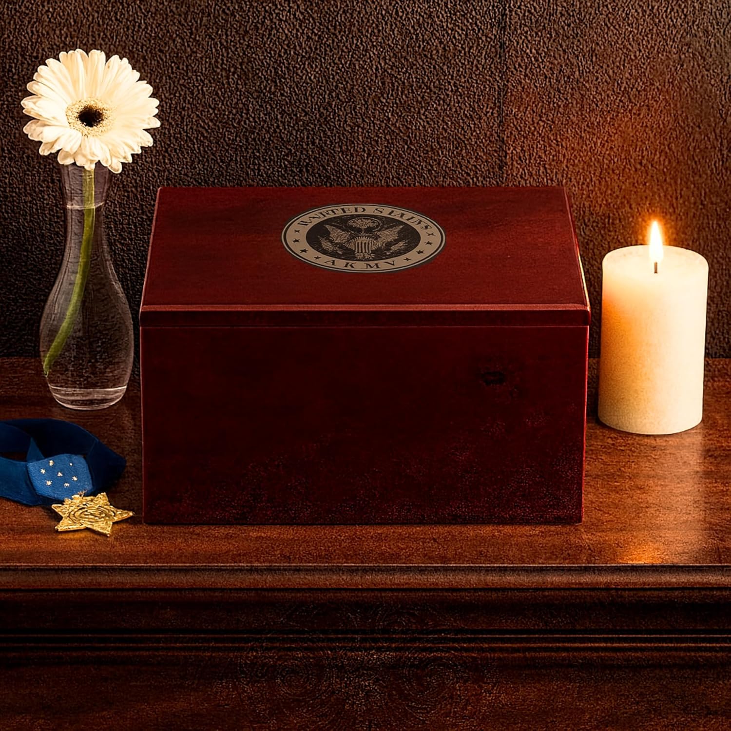 - Burial, Memorial or Keepsake: Our US Army urns for human ashes are suited for memorial, funeral, or ground burial. This rosewood urn provides a beautiful, secure, and lasting resting place for your loved one.