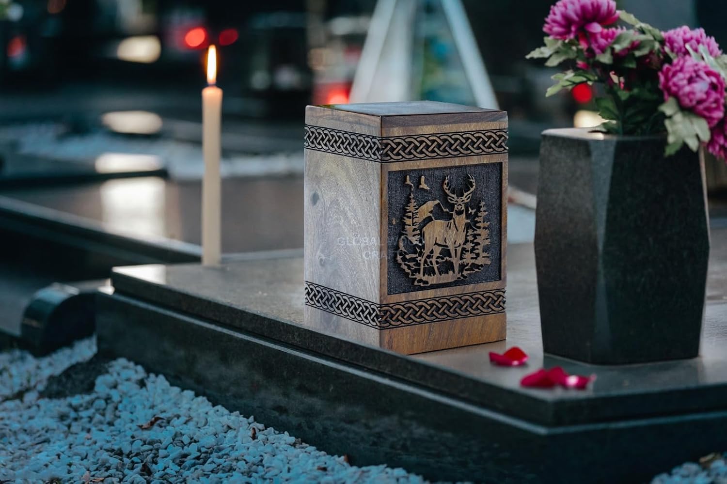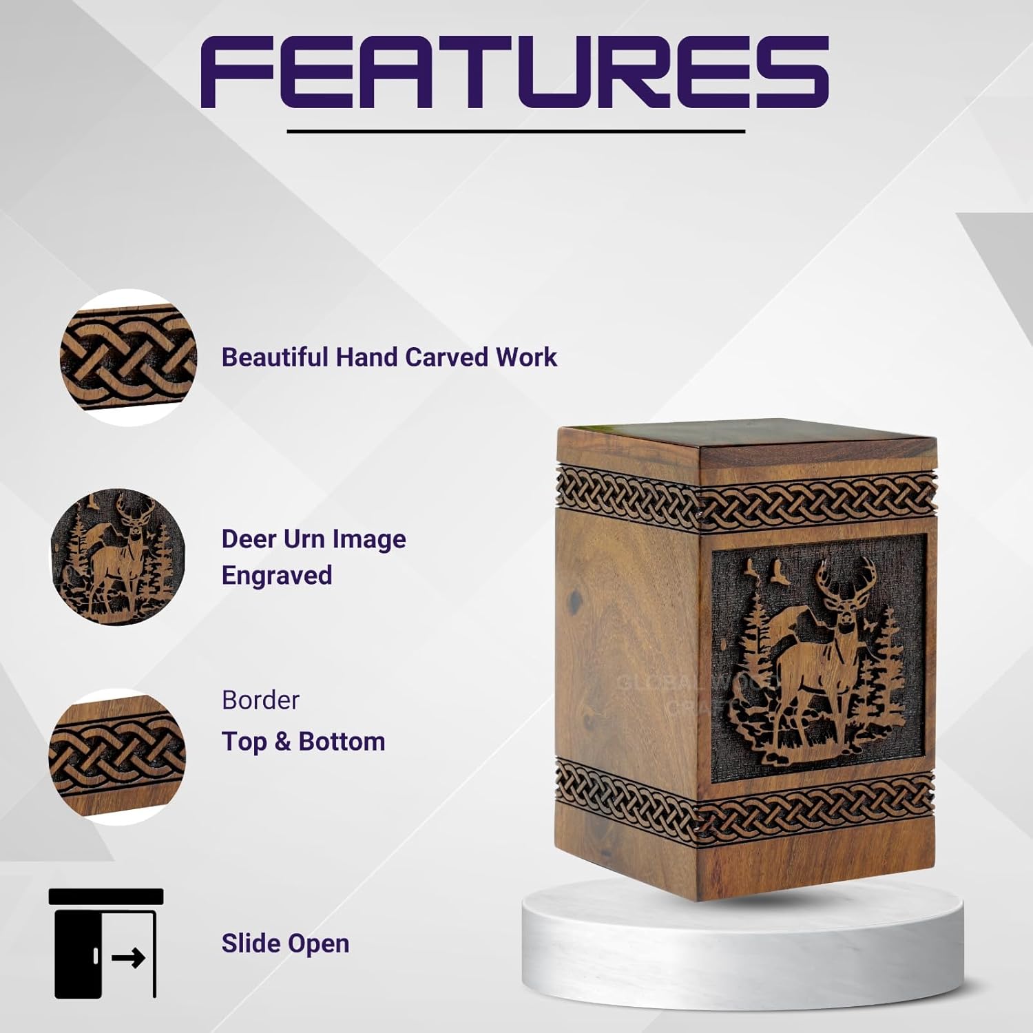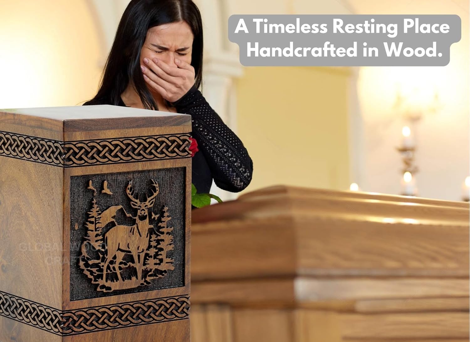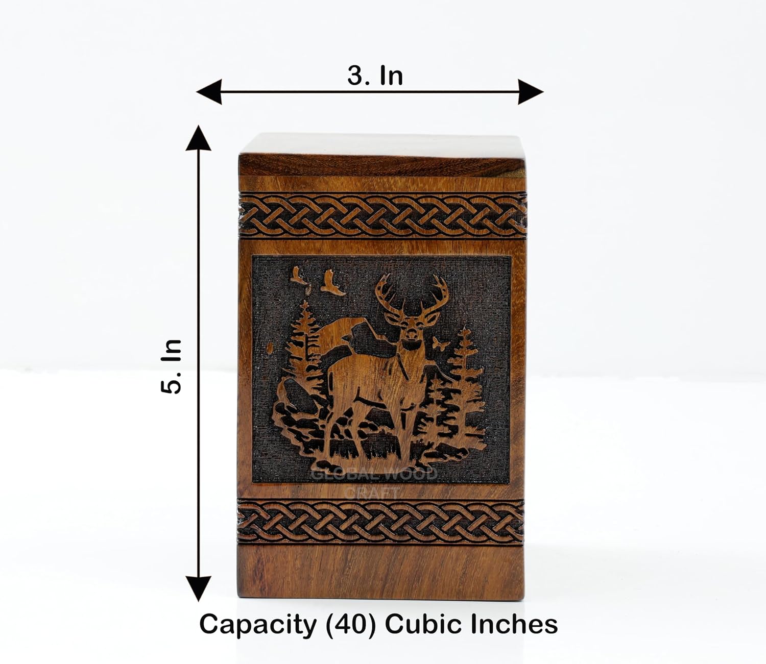- Elegant Design: This rosewood rectangular urn features intricate hand-carved deer and tree designs, adding a touch of natural beauty to the memorial piece.