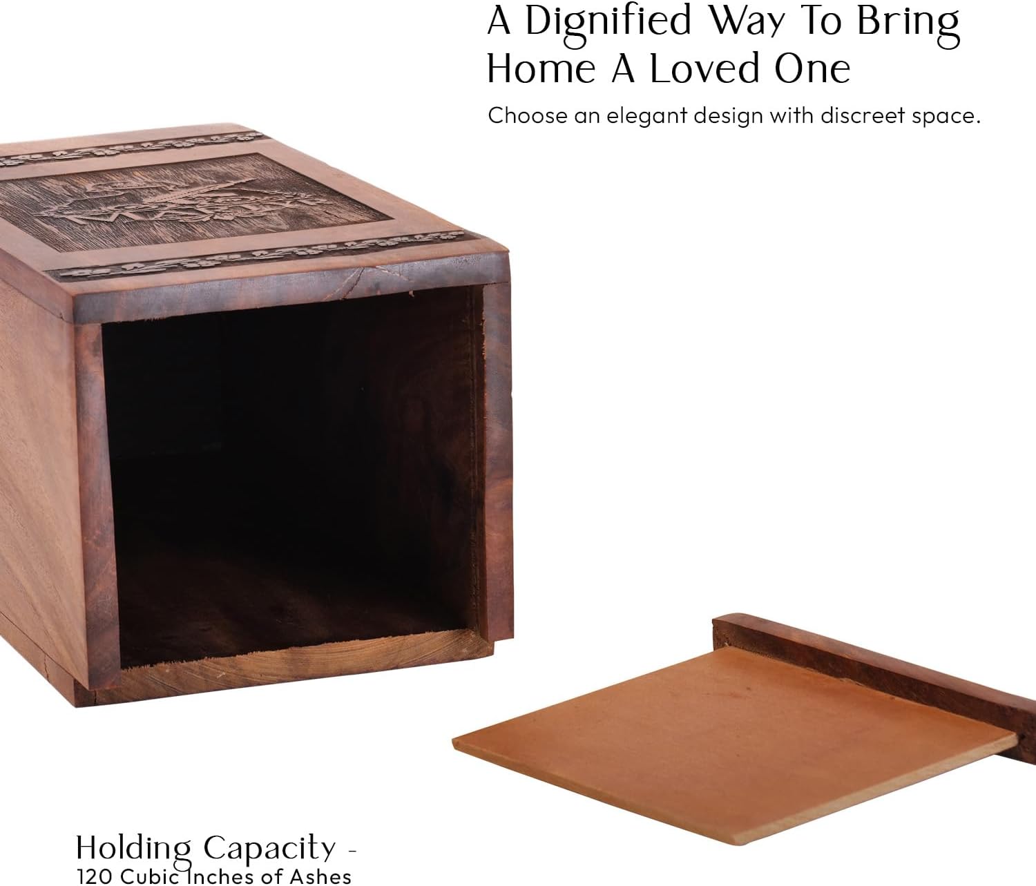 - Quality Craftsmanship: Constructed from premium wood, this urn is built to last, ensuring a dignified and secure resting place. With a capacity of 115 cubic inches, it comfortably accommodates the ashes of adult individuals, reflecting both strength and endurance.