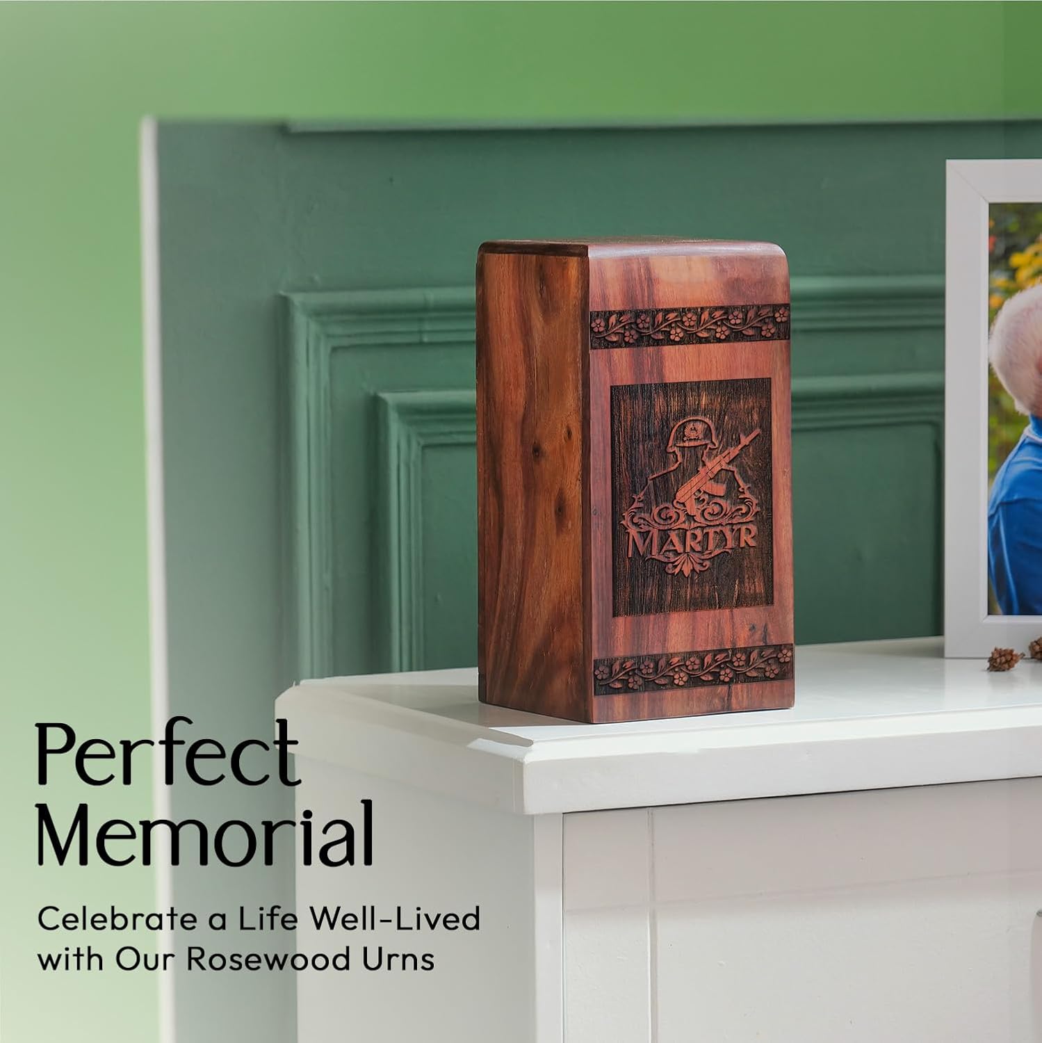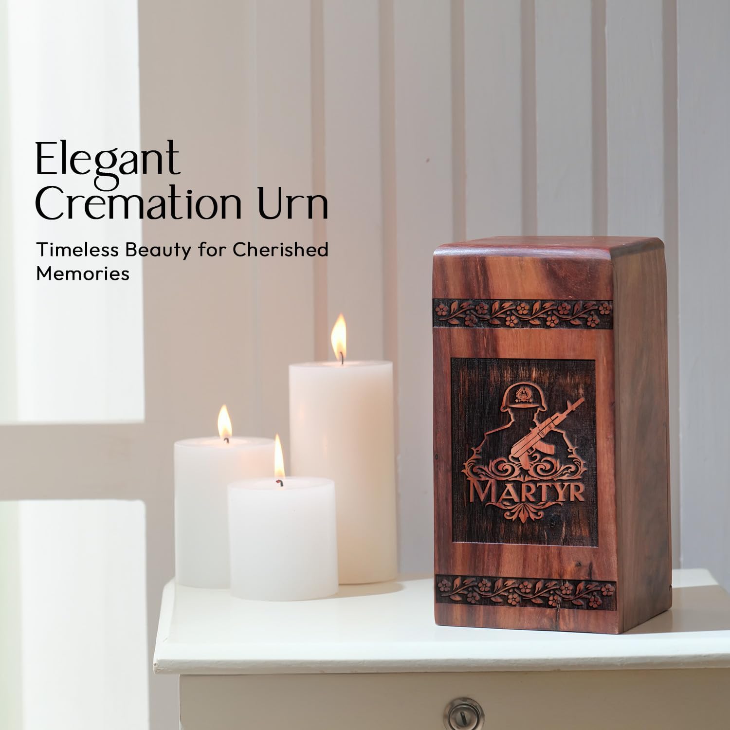 - Distinguished Naval Soldier Design: This wooden urn features a meticulously crafted depiction of a Naval soldier with a gun, making it a perfect tribute for veterans or active service members. Its unique design stands out from standard urns on store.