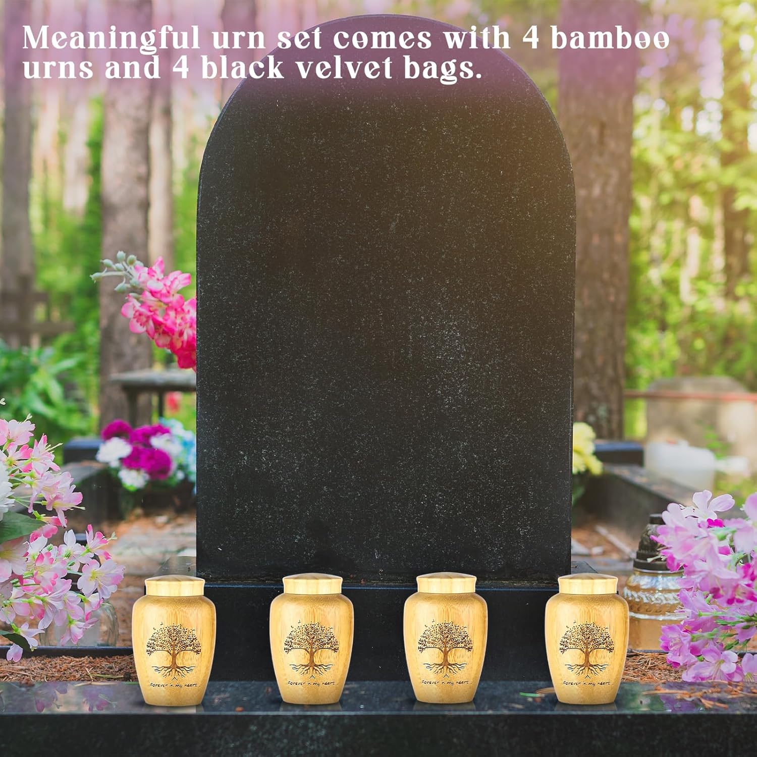 - Meaningful Urn for Ashes: the set includes 4 bamboo mini urns for human ashes along with 4 easy to carry and protective black velvet urn bags; These urns cater to different needs, whether for individual keepsakes or for scattering at multiple meaningful locations, and serve as secure and safe resting places for your loved ones