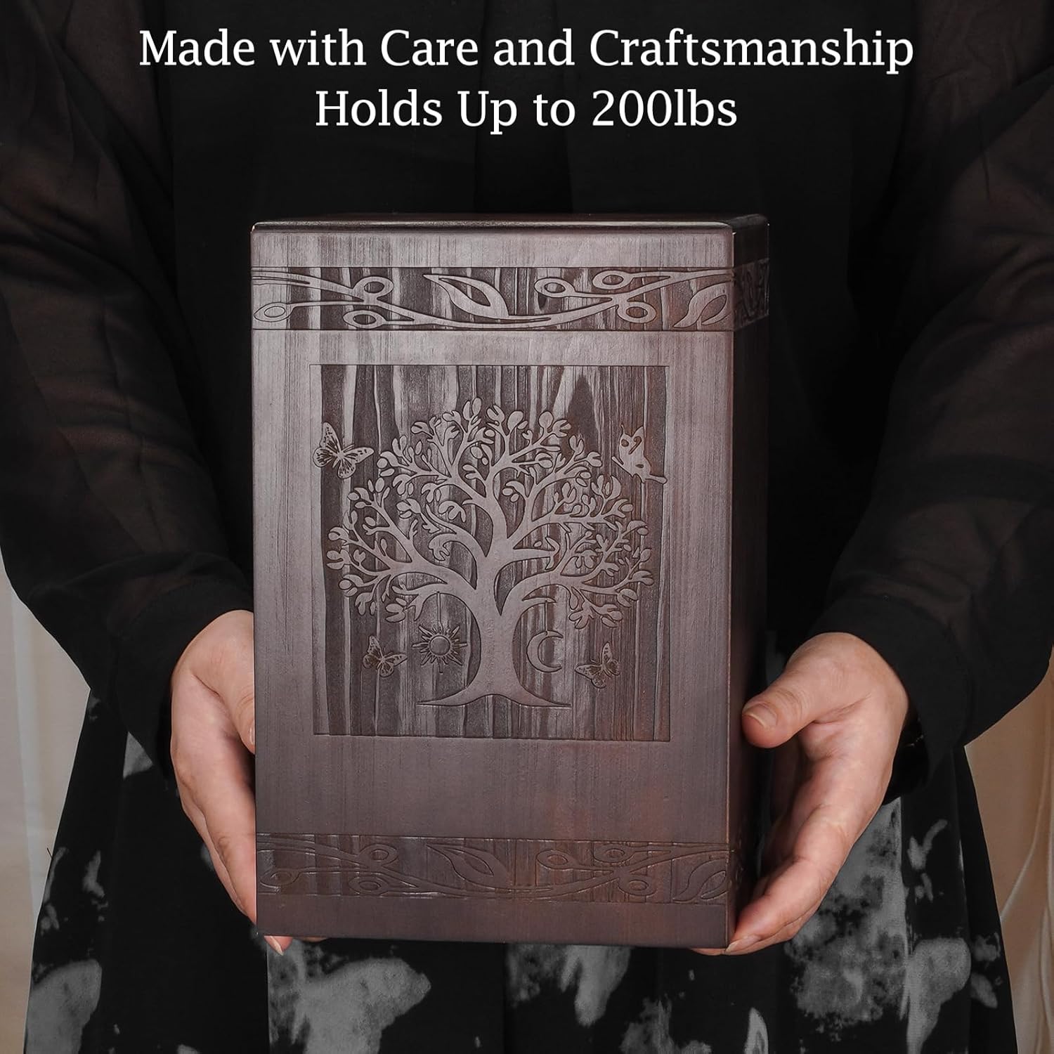 - HANDCRAFTED WOODEN CREMATION URN: Each urn for ashes is handcrafted with care from 100% premium pinewood, featuring intricate Tree of Life and butterfly carvings that symbolize growth, transformation, and eternal love. The timeless design blends natural beauty and warmth, offering a lasting tribute to your loved one’s memory