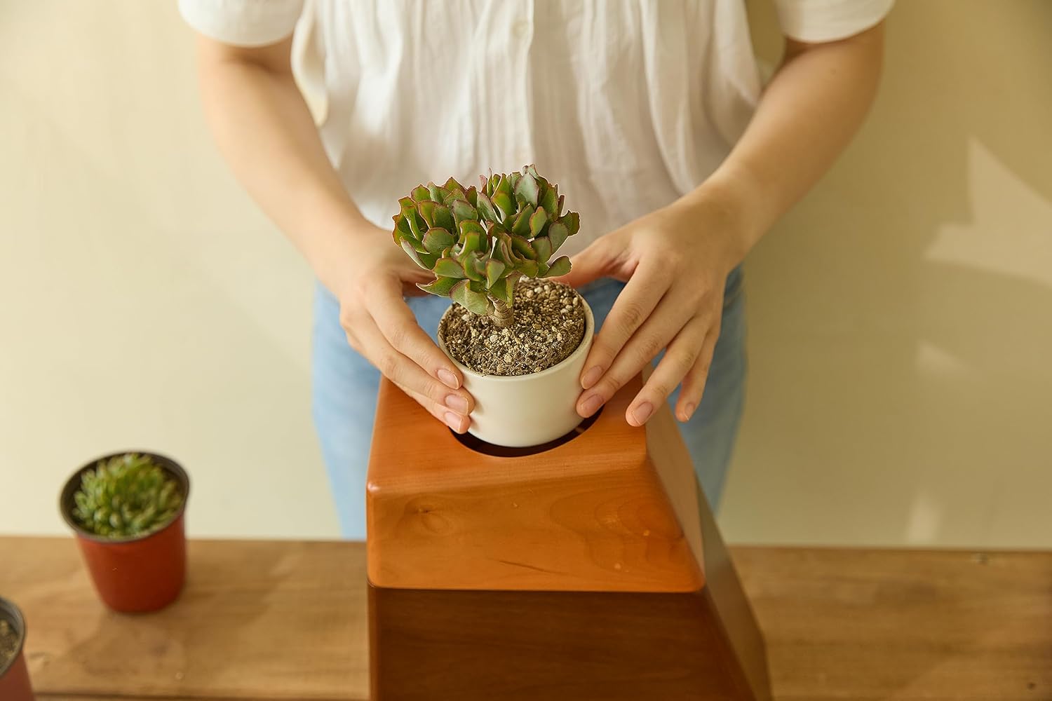 - 【Hand-Crafted of Real Wood】 This plant urn is meticulously hand-crafted from solid wood, making it outstanding in terms of design and a perfect fit for interior decor. Birch Wood for top block and engineered walnut wood for lower block.