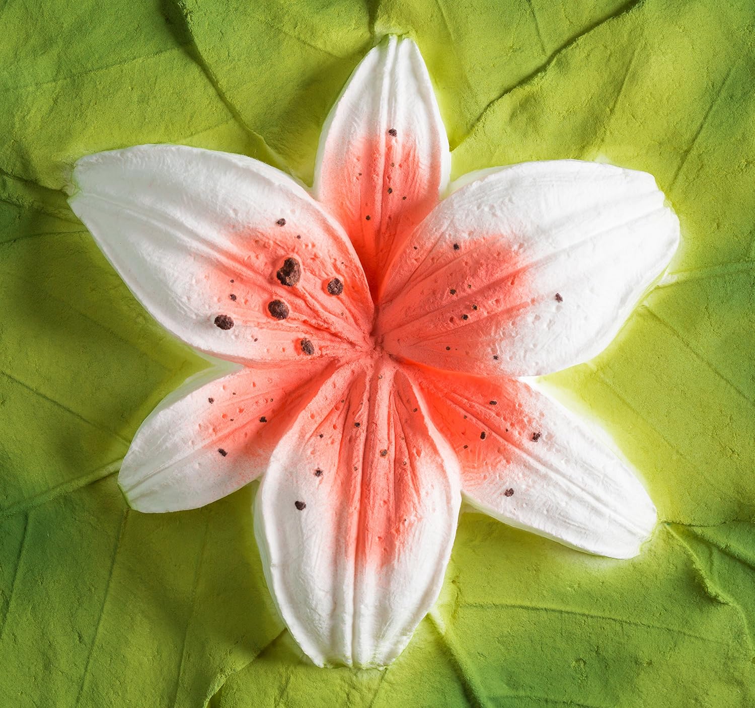 | Color | Coral Painted Lily on 9 Green Leaves |