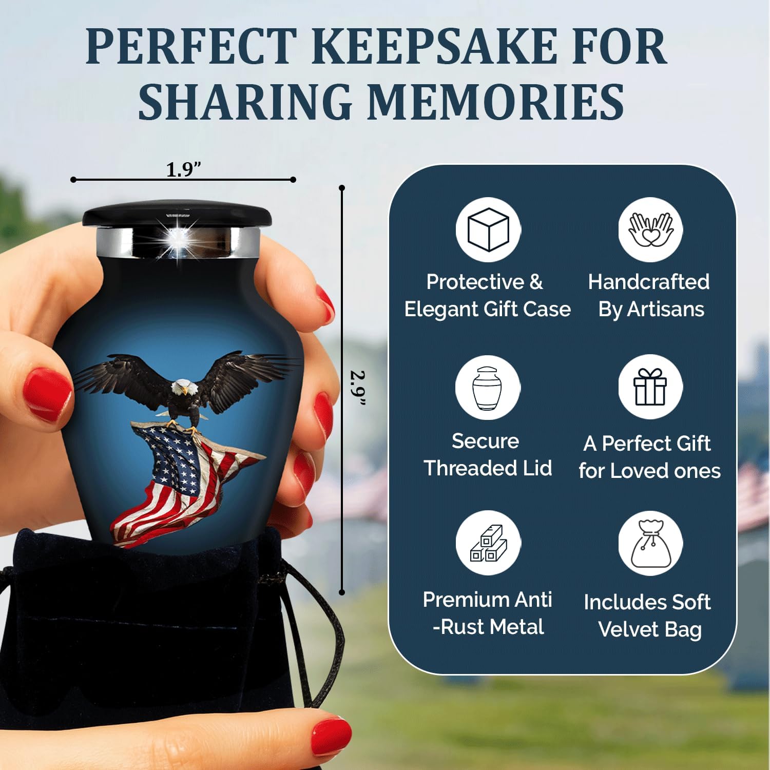 - Handmade with love: Each urn for ashes adult male is handcrafted with care, so minor variations make every piece unique. Whether you're honoring a veteran, father, or hero, this Black Eagle Cremation Set keeps their memory flying high.