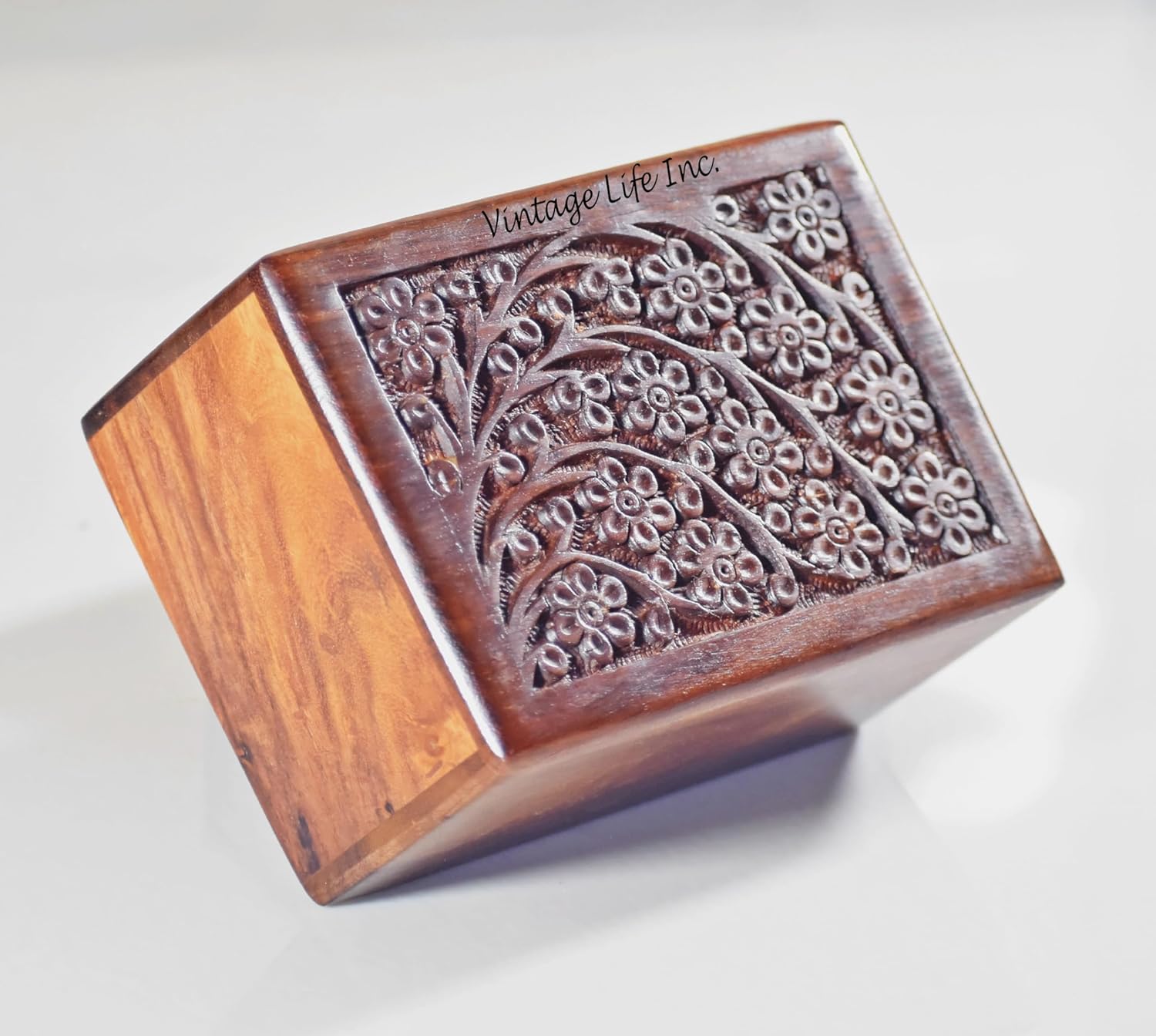 Hand Carved Wooden Cremation Urns - Medium 6.25 x 4.25 x 2.8 Inch (38 lbs or 17.23kg) is backordered and will ship as soon as it is back in stock.
