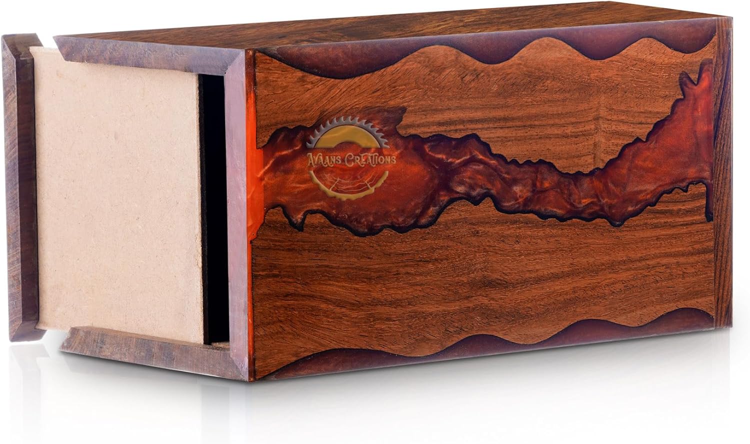 Handcrafted Rosewood Red Epoxy Resin Memorial Urns Box