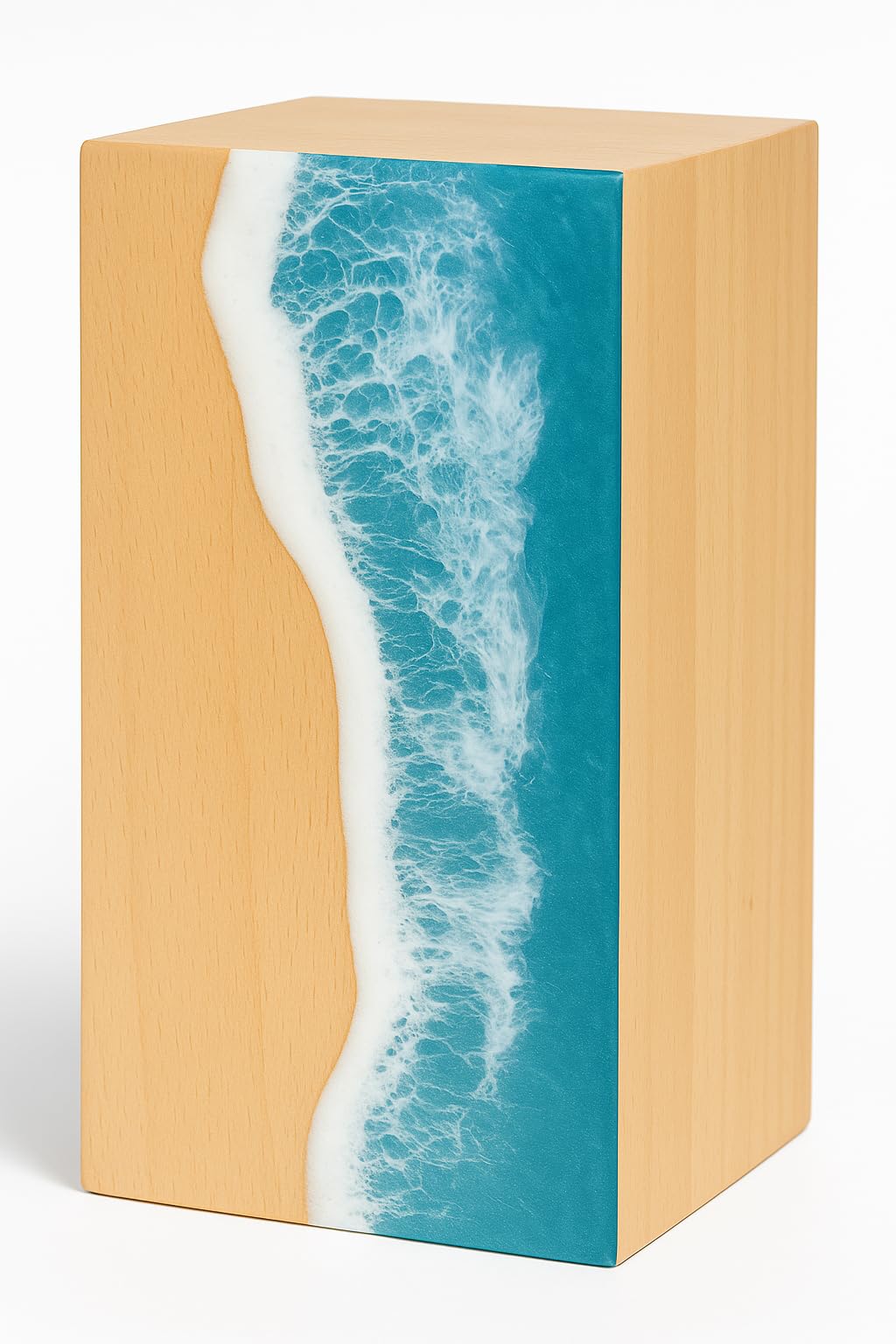 Handcrafted Wooden Cremation Urns with Ocean Epoxy Design