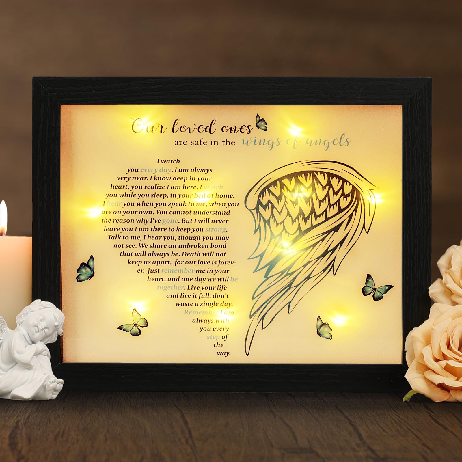 - Sympathy Gift Ready to Gift: Flowers soon go away while this shadow box lasts long to accompany. This LED memorial shadow box comes securely packaged in elegant black gift box and protected in extra bubble bag. Along with the shadow box frame, there is a sympathy card with heartfelt words to express your support for the person who has lost their loved one. Loving and beautiful bereavement gifts ideas for rememberance, condolence and funeral