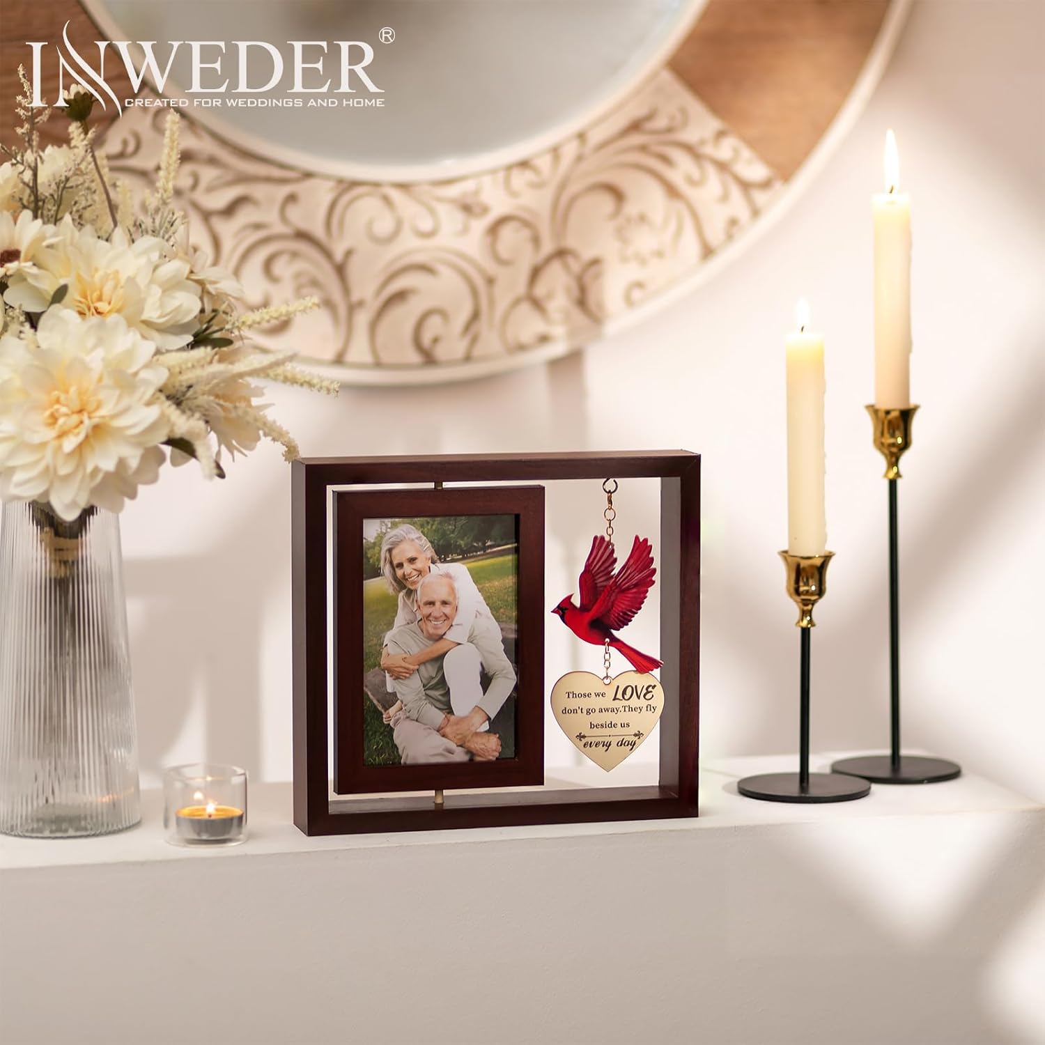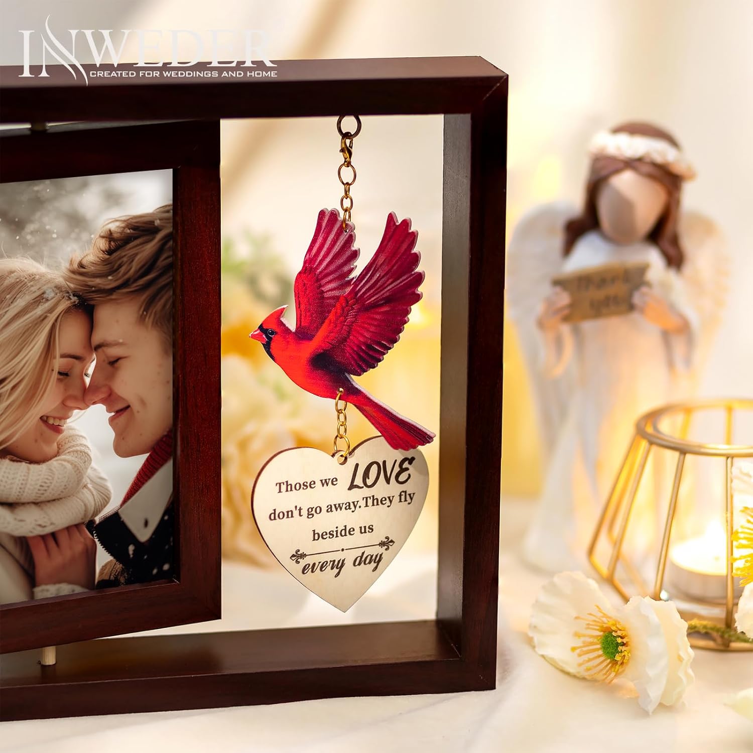 - [ETERNAL MEMORY KEEPER]: Inweder loved one picture frame adorned with a cardinal bird pendant as its central jewel. Accompanied by a heart-shaped pendant etched with the sentiment, “Those we LOVE don't go away. They FLY beside us every day”. This loved one memorial gifts serves not just as a recall to those who have passed, but also bestows solace upon the living, transforming each glance into an intimate dialogue brimming with affection and warmth.