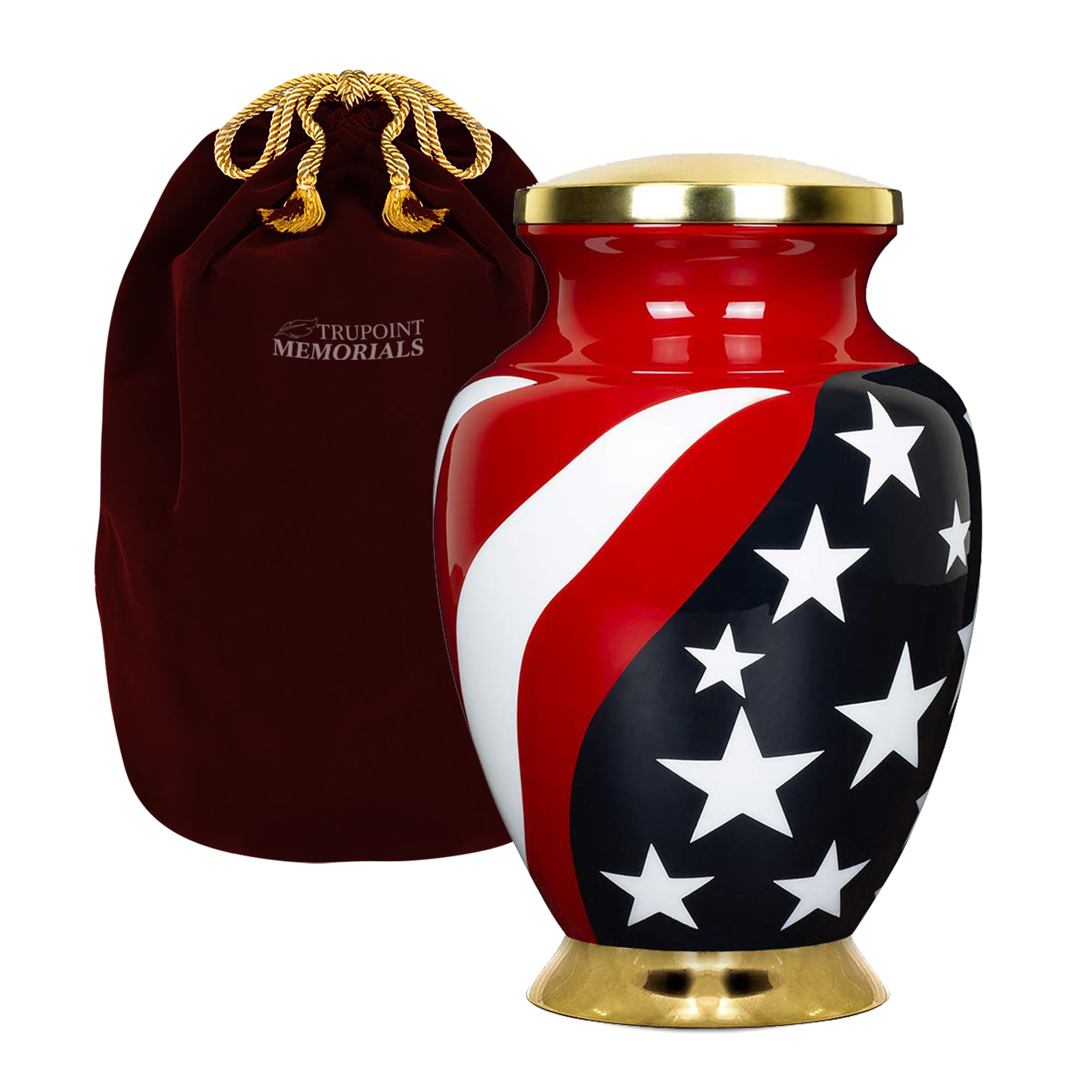 Trupoint Memorials Cremation Urns for Human Ashes - Gold Usa Flag / Large is backordered and will ship as soon as it is back in stock.