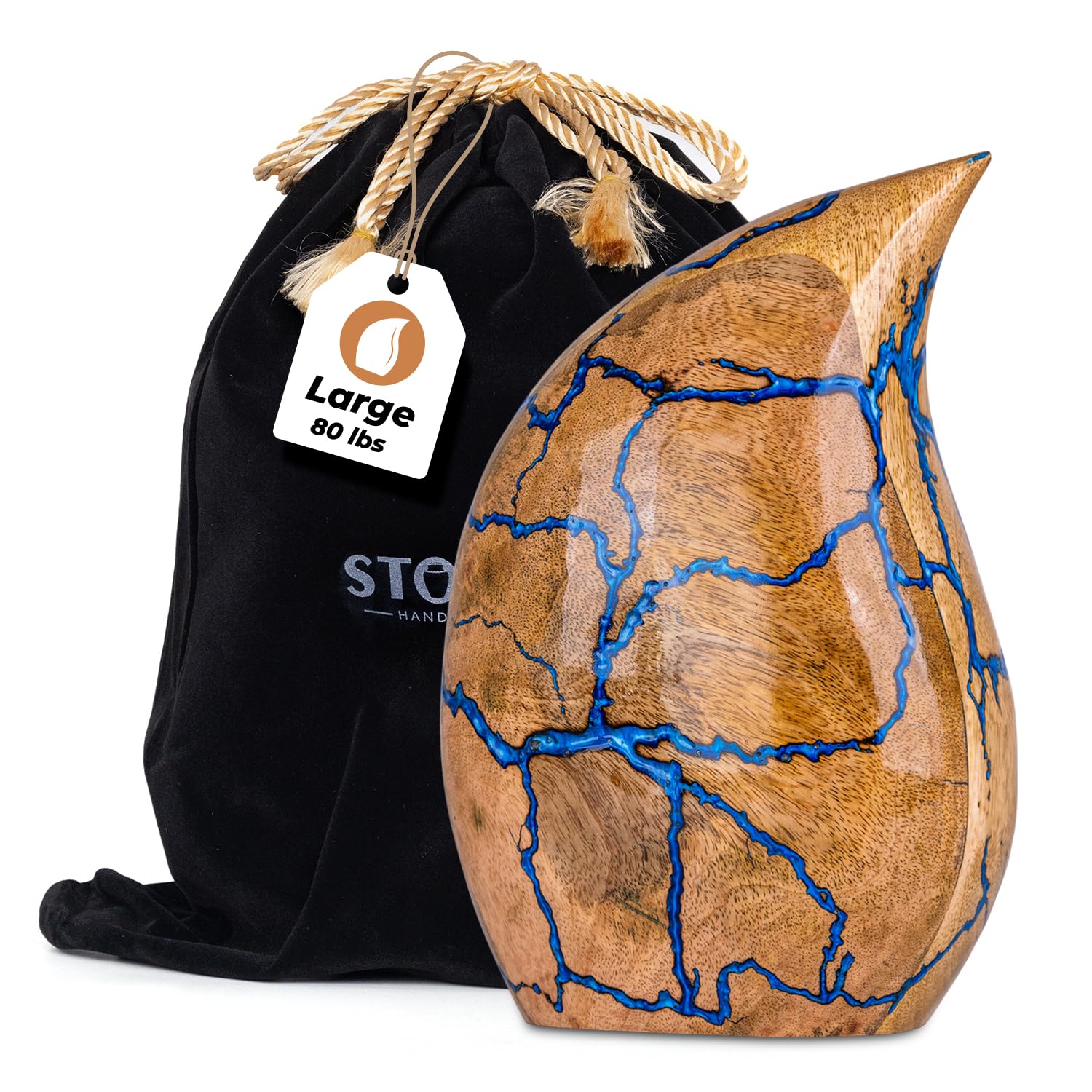 - A SANCTUARY OF PEACE AND REFLECTION - The rich, natural cremation wood urns combined with calming blue accents creates a serene space for reflection and remembrance. This urn for human ashes offers a tranquil resting place that not only holds ashes but also embodies the peace and love you carry for them.