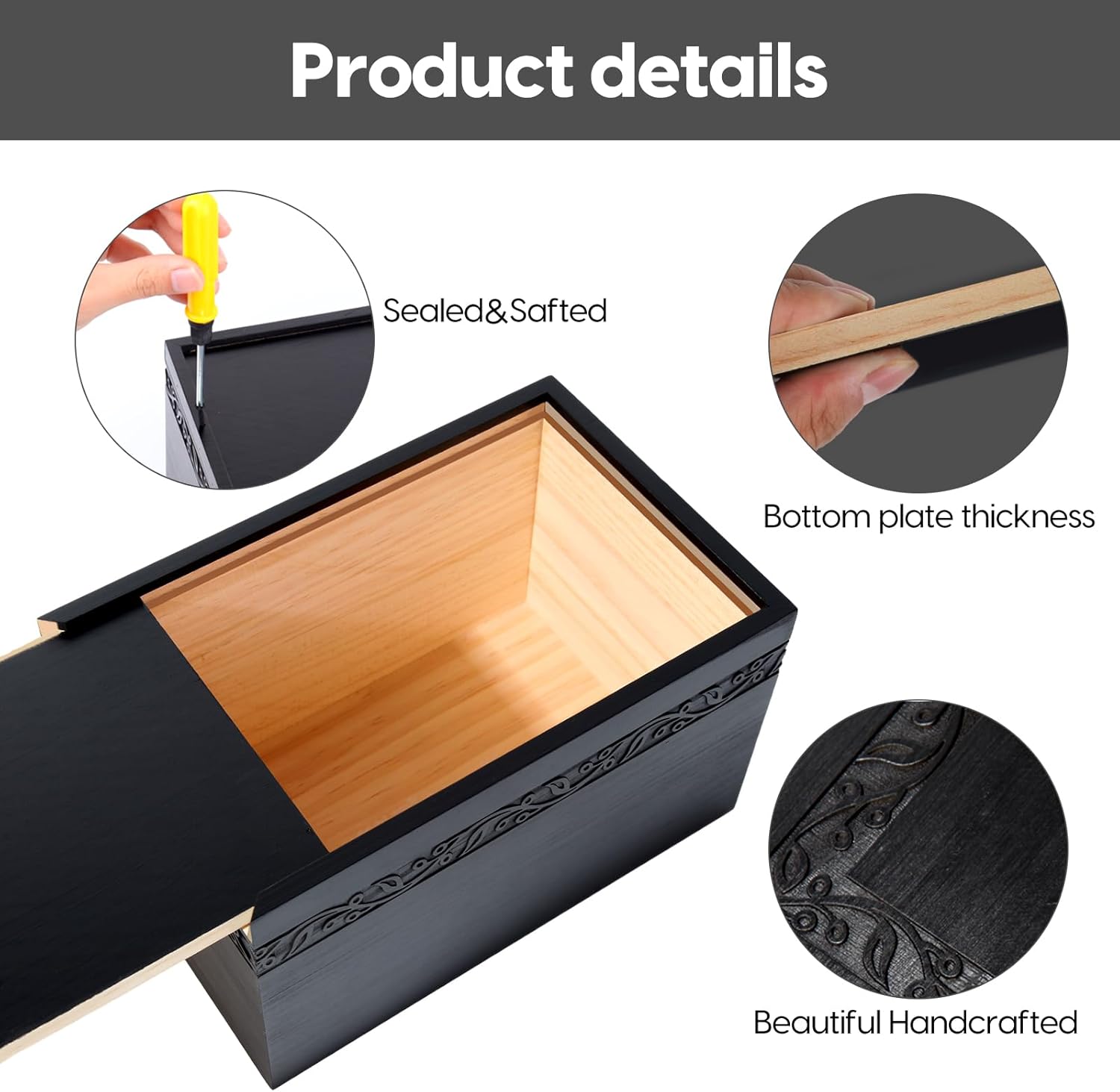 - Our cremation urns for adult ashes have a solid bottom with 4 screws to keep ashes secured. With our large urn, rest assured that the remains of your loved one are safe.