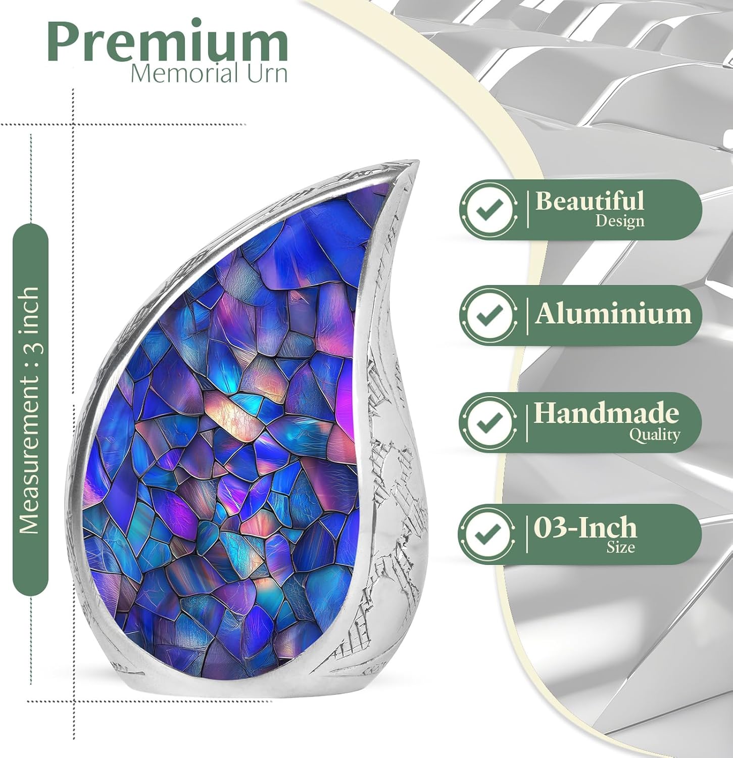 - Ashes Keepsake - Crafted with care from good-quality aluminum, this beautiful looking urn keepsake size is 3 Inch with 2-3 cubic inches of capacity. This ashes keepsake for men designed to endure the test of time, providing a heartfelt tribute to your departed loved ones.