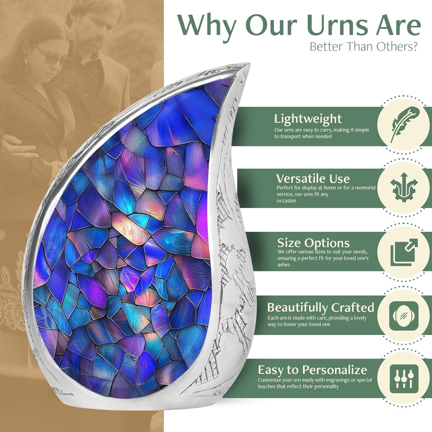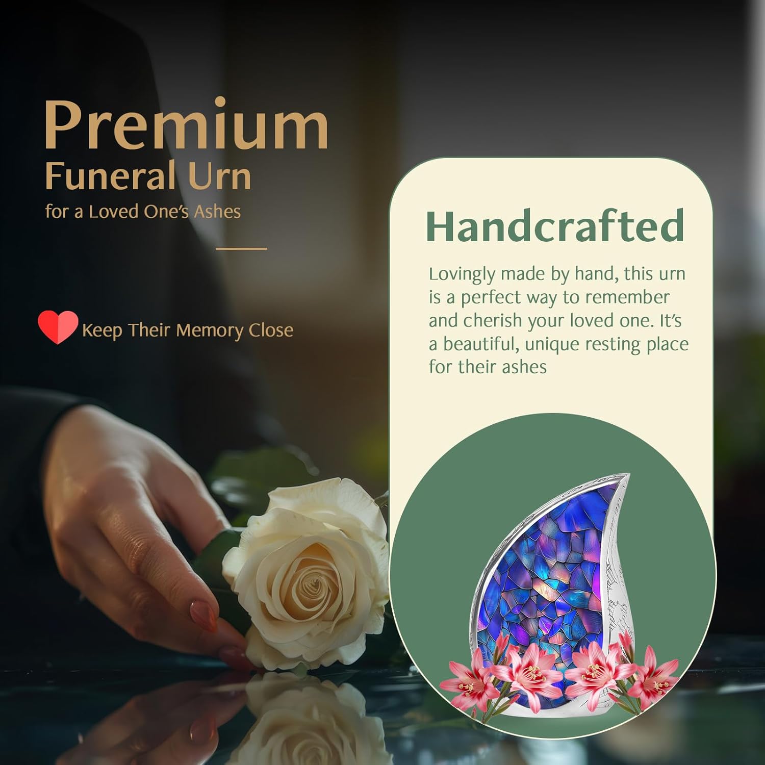 - Human Urns for Ashes - Our mini urn for ashes feature a timeless and elegant design, making it a beautiful tribute to honor your loved one's memory. This keepsake for ashes of loved ones compact size allows for easy placement on a shelf, mantelpiece, or any special area you choose.
